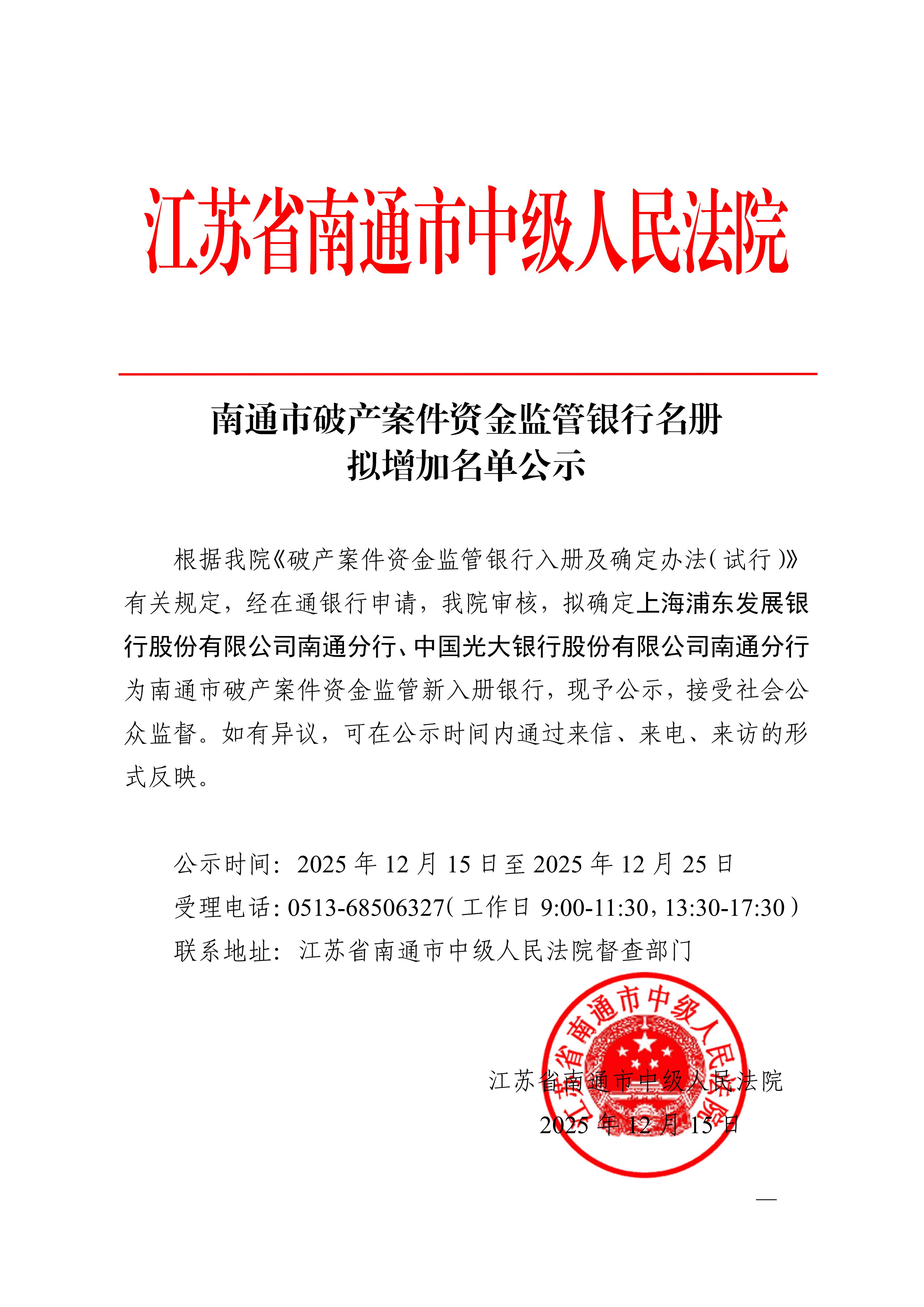 2025年资金监管银行拟新入册名单公示