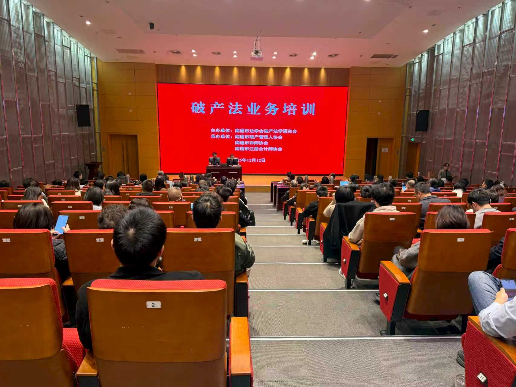 为持续优化法治化营商环境,提升全市破产从业人员专业能力,推动破产审判工作高质量发展,2025年12月12日下午,由南通市法学会破产法学研究会主办,南通市破产管理人协会、南通市律师协会、南通市注册会计师协会联合承办的“破产法业务培训”在南通市图书馆成功举办。南通两级法院破产审判负责人、法官、三家协会会员代表共计160余人参加培训。活动由南通市中级人民法院清算与破产审判庭庭长陈燮峰主持。活动伊始,陈庭长介绍了南通地区2025年破产审判总体工作情况。