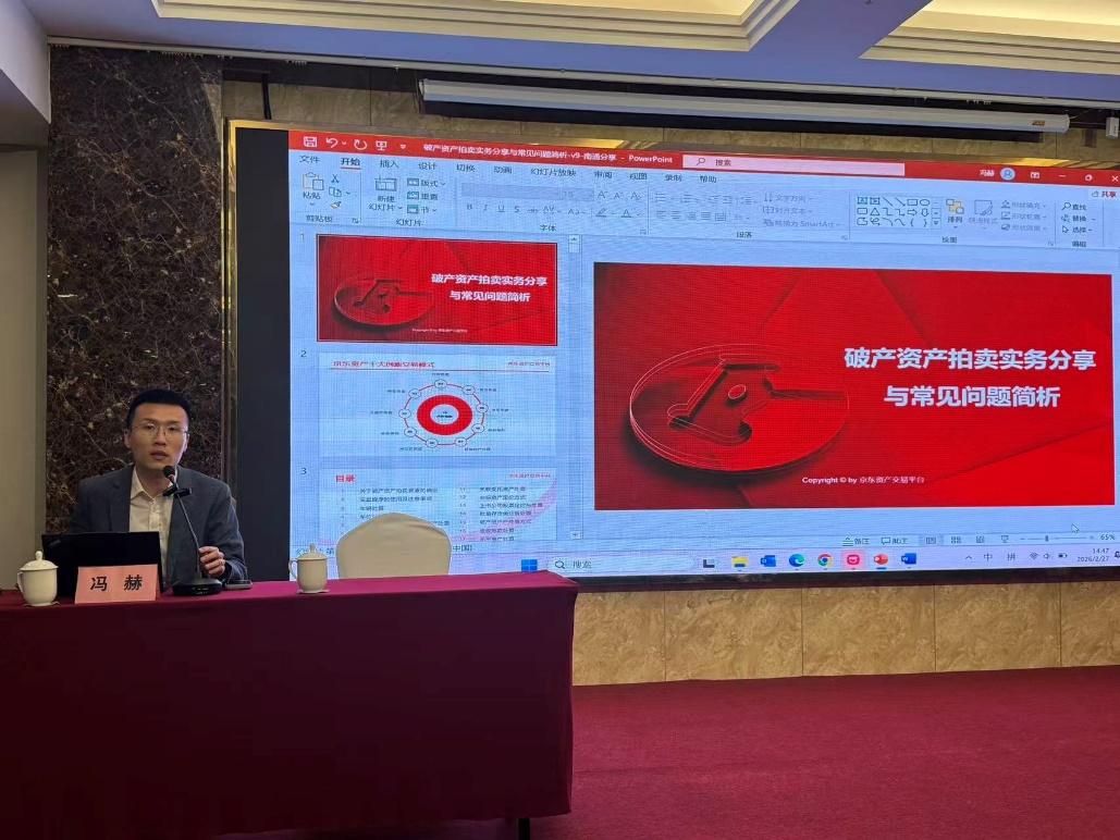 活动伊始,京东资产交易平台华东负责人冯赫作 “特殊资产交易中数智化工具与服务应用”专题分享。他详细展示了京东平台运用大数据询价、智能撮合、线上会议及AI辅助等数智化工具,提升破产资产处置效率与价值,为行业数字化转型提供了新思路。