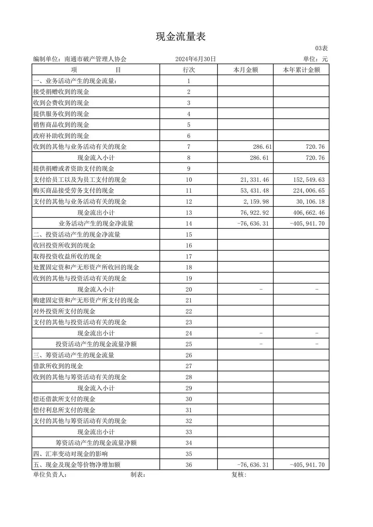 南通市破产管理人协会2024年度财务半年报公示